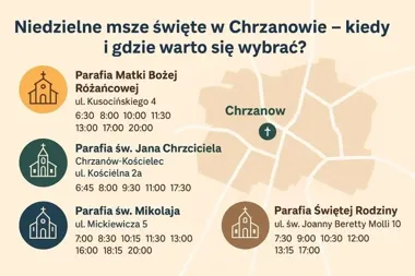 Chrzanów, choć nie jest wielkim miastem, może poszczycić się bogatym życiem religijnym i różnorodnością wspólnot parafialnych. W każdą niedzielę mieszkańcy mają do wyboru aż kilkadziesiąt mszy świętych w czterech dużych parafiach, które rozlokowane są w odmiennych częściach Chrzanowa. Dzięki temu, każdy wierny niezależnie od planów czy godzin pracy, może znaleźć dogodny moment na udział w liturgii. Oto przegląd chrzanowskich parafii i ich harmonogramów liturgii w tym dniu.