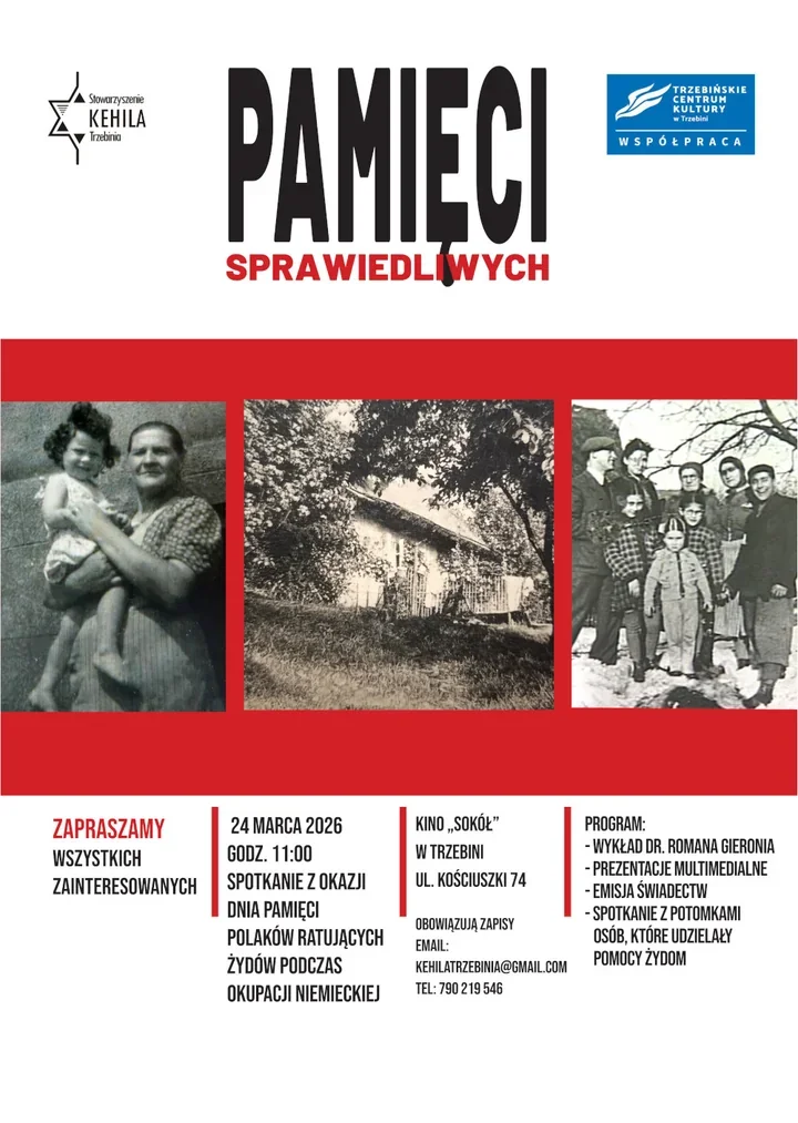 W sercu Trzebini odbędzie się spotkanie, które łączy lokalną pamięć z historią Zagłady. W kinowej sali mają zabrzmieć opowieści o ludziach, którzy w czasie okupacji zdecydowali się pomagać Żydom – i o tych, którzy dzięki temu przeżyli. Organizatorzy zapraszają na rozmowy, filmy i relacje potomków uczestników tamtych wydarzeń.
