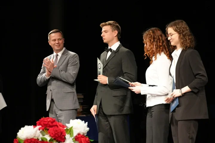 Podczas uroczystości nie zabrakło nagród dla tych, którzy przez lata nauki wyróżniali się wynikami i zaangażowaniem. Starosta Bartłomiej Gębala wręczał najlepszym uczniom dyplomy i statuetki, a wśród gości byli także wicestarosta Ewa Jędrysik oraz Paweł Ostrzywilk, dyrektor Wydziału Edukacji, Kultury i Sportu Starostwa.