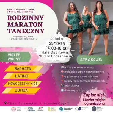 Wydarzenie jest częścią projektu pod nazwą “PRESTO Aktywnie – Taniec, Zdrowie, Bezpieczeństwo”. Organizatorzy zapowiadają dodatkowe atrakcje i niespodzianki w trakcie trwania maratonu. Szczegóły dotyczące programu i organizacji będą udostępniane przed datą imprezy.