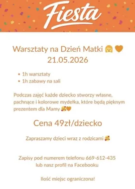 To wydarzenie ma typowo świąteczny, ciepły charakter Takie warsztaty zwykle są dobrą okazją, żeby na chwilę zwolnić, zrobić coś własnoręcznie i przygotować się do Dnia Matki w bardziej osobisty sposób.
